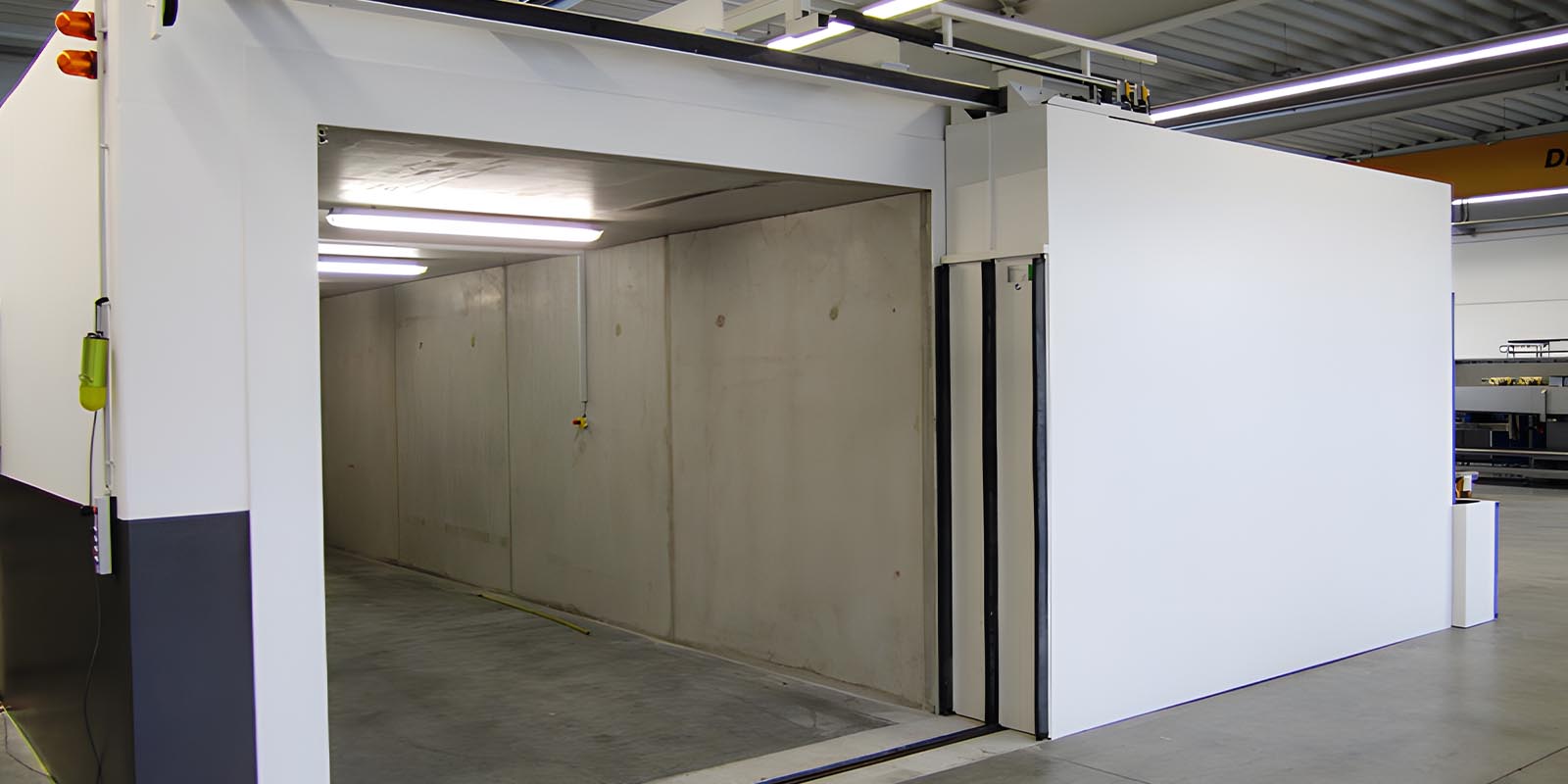 Strahlenschutztore für die Durchstrahlungsprüfung werden, abhängig von der Spezifikation der Strahlenquelle und den daraus resultierenden Abschirmerfordernissen und Torblattgewichten, in zwei verschiedenen Bauweisen ausgeführt: